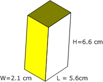 Using the correct answer from Part B, calculate the volume of a rectangular prism with a length of 5.6 cm, a width of 2.1 cm, and a height of 6.6 cm.